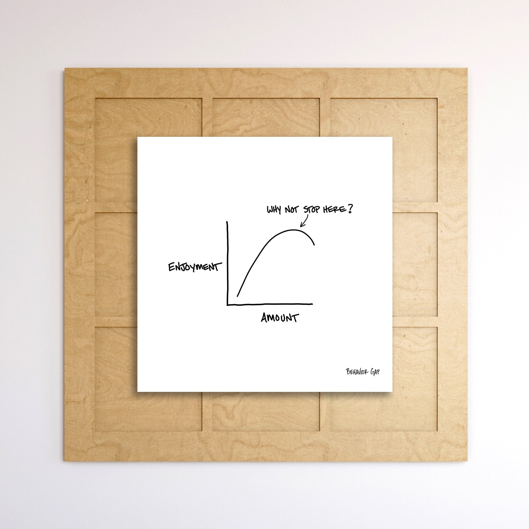 3:3 PANEL made from premium wood with 1/4" premium floating white-faced lam, direct printed. Surrounding tiles (all 8) and art module easily swap out to update with alternate Behavior Gap sketches!
