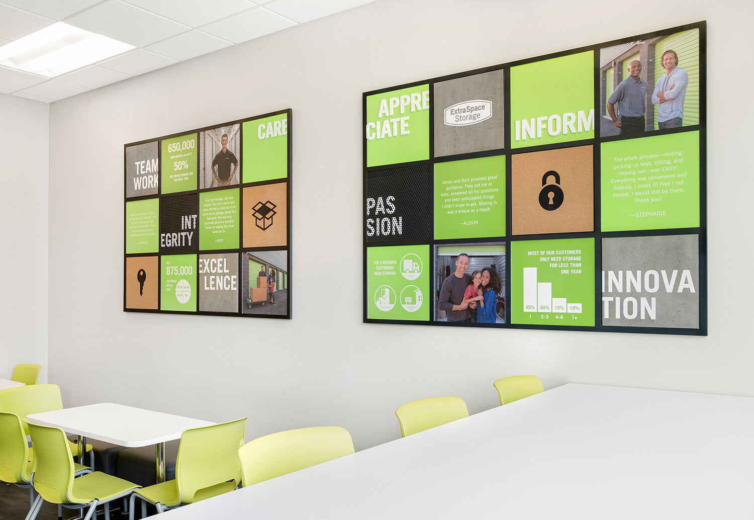 DASH in lobbies and open areas nails it every time! There's no limitation on size or shape, so unleash your creativity and spec any type of signage, textures, imagery, and any other branding element that'll enhance and delight visitors and employees. Remember, you can integrate 3D modules as well to hold corporate awards, plants, important corporate artifacts, etc. It's common for our clients to do many locations, each with variations on their core branding while still meeting the unique needs and requirements of the space. One of the real beauties of DASH is its unbelievable versatility.
